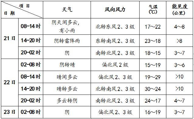 預(yù)計23-28日期間,大部分時間本市天氣為晴到多云。受冷空氣影響,23日天空云量較多,夜間山區(qū)有陣雨,降雨對城區(qū)影響不大;24-26日多3、4級偏北風。該期間氣溫呈上升趨勢,白天最高氣溫24~34℃,夜間最低氣溫15~20℃。