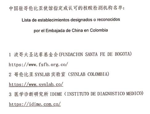 駐哥倫比亞使館提醒經(jīng)有關國家赴華乘客做好核酸檢測