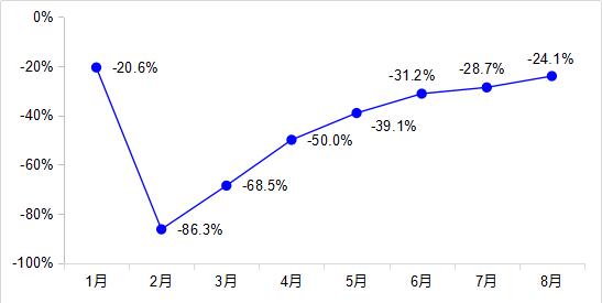 8月,完成營(yíng)業(yè)性客運(yùn)量9.8億人,恢復(fù)至去年同期的62.2%,恢復(fù)程度較7月提高4.2個(gè)百分點(diǎn),其中公路營(yíng)業(yè)性客運(yùn)量下降39.6%、水路客運(yùn)量下降41.2%。