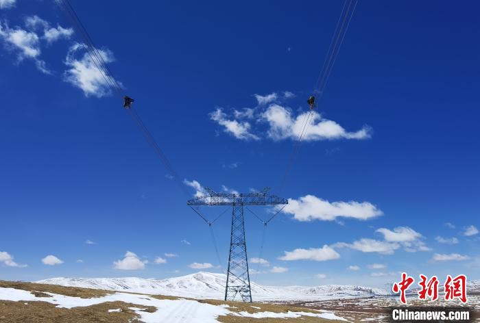 圖為國網(wǎng)青海檢修公司專業(yè)人員開展青藏聯(lián)網(wǎng)工程柴拉直流輸電線路年度檢修工作?!≈x莉蓉 攝