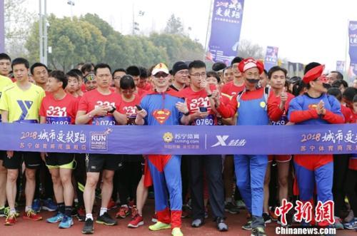 中新網(wǎng)3月27日電 近日,由蘇寧體育聯(lián)合特步中國全力打造的首屆2018蘇寧體育“城市變裝跑”在南京綠博園內(nèi)盛大舉行。這是一場觸發(fā)能量、喚醒春意的體育賽事,不僅是運動愛好者的嘉年華,更是一場全民參與的趣味活動。