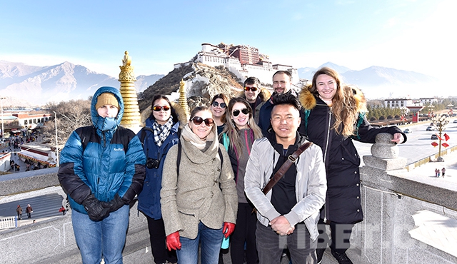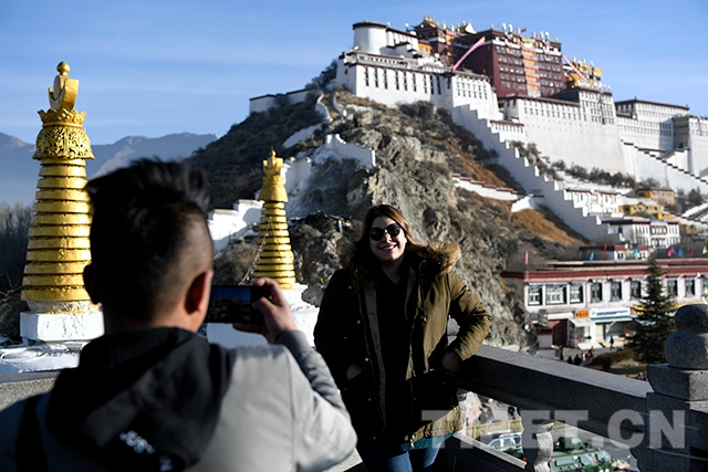 新年第一天,記者在西藏自治區(qū)拉薩市藥王山觀景臺(tái)遇見了來自美國(guó)的游客Lauren和她的團(tuán)友們。這是一個(gè)由8名游客組成的外賓團(tuán),他們分別來自美國(guó)、哥倫比亞等7個(gè)國(guó)家。