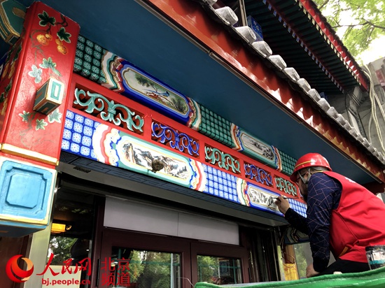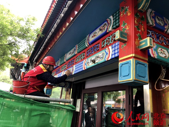 人民網(wǎng)北京5月14日電(池夢蕊)初夏時節(jié),北京南池子大街、北池子大街和東華門大街上綠樹成蔭。建設者們在街道兩側的小型圍擋內(nèi)忙碌著,對著一處處木門、門頭、外墻、屋檐和門廊彩繪如切如磋、如琢如磨。
