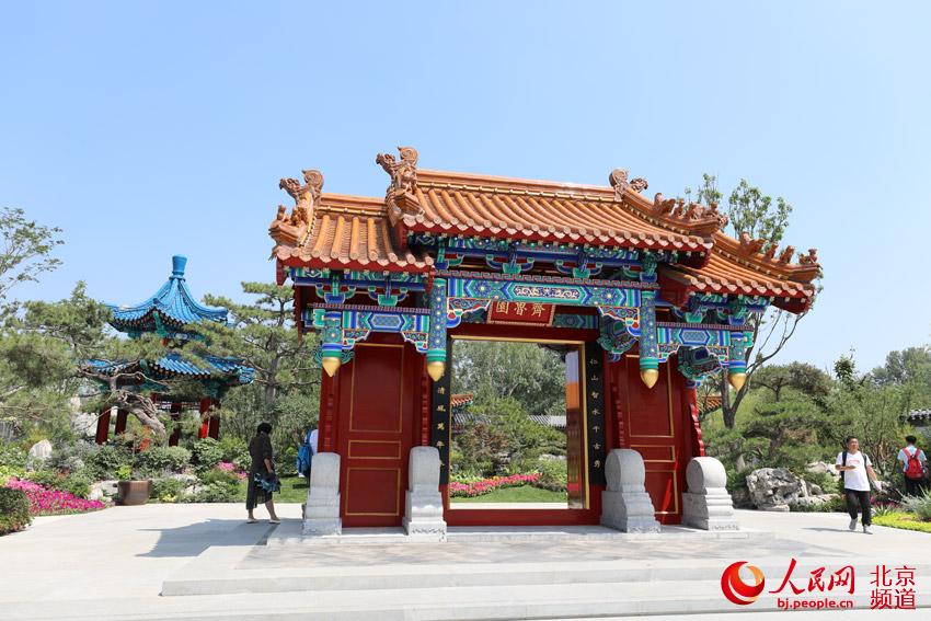 步入山東展園,第一景便是齊魯迎賓。這里以孔府重光門為設(shè)計(jì)原型,提名“齊魯園”,寓意儒家思想是中華民族的精神家園,隱喻孔子“天下第一家”的概念。人民網(wǎng)尹星云 攝
