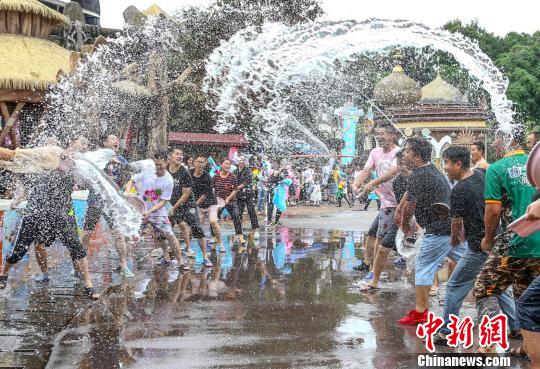 圖為游客們手持水槍、水盆等道具展開(kāi)“激戰(zhàn)”。 鐘欣 攝