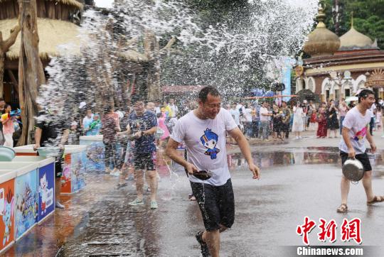 圖為游客們手持水槍、水盆等道具展開(kāi)“激戰(zhàn)”?!$娦?攝
