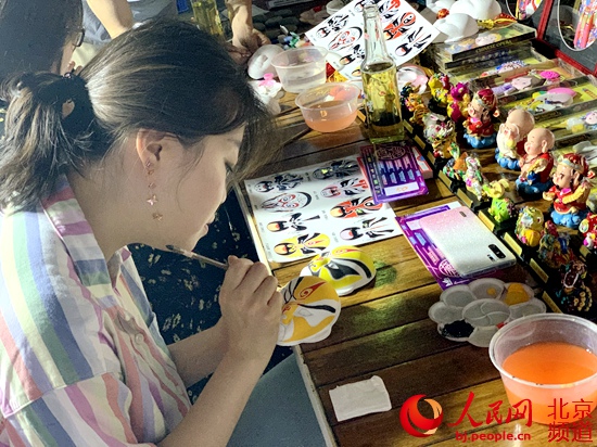 在中關(guān)村國際創(chuàng)新集市上,市民現(xiàn)場體驗(yàn)非遺項(xiàng)目制作。人民網(wǎng) 孟竹 攝