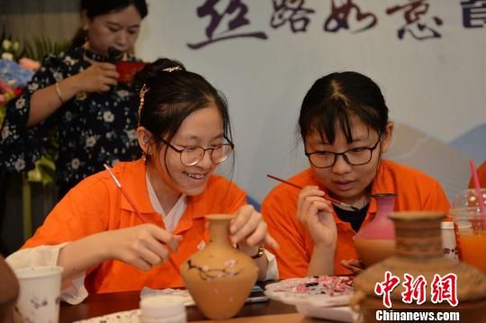 6月28日,甘肅首家絲路如意餐廳正式向公眾亮相,餐廳內還舉行了“絲路文化小課堂”,孩子們正在給陶坯涂色。 鐘欣 攝