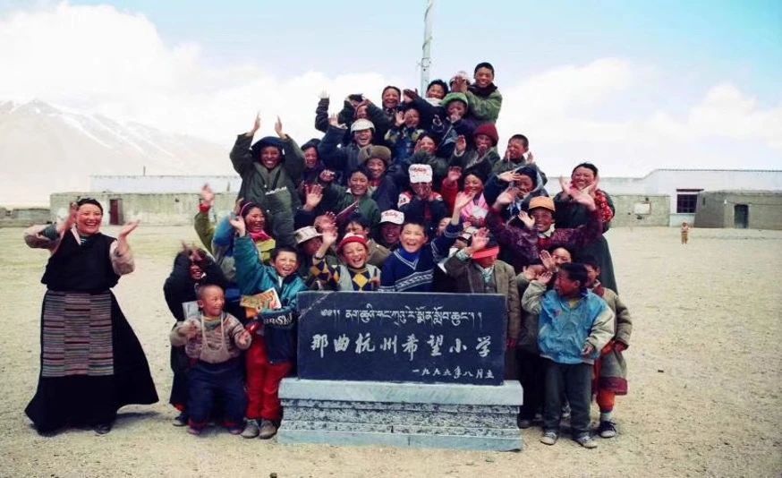 那曲市平均海拔達4500米以上,是西藏海拔最高的地級市。1995年5月,浙江省第一批援藏干部來到這里,他們調(diào)研發(fā)現(xiàn)當時那曲地區(qū)適齡兒童入學率只有22.5%,艱苦的環(huán)境和薄弱的基礎設施橫亙在高原兒童的求學路上。時任那曲縣常務副縣長的援藏干部姜軍給《杭州日報》領導寫了一封信,希望能夠獲得家鄉(xiāng)人民的支持,為那曲捐款建設一所小學。
