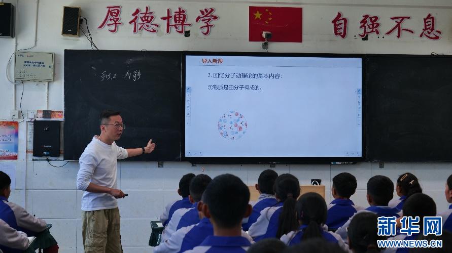 8月14日,援藏老師陸汶軍正在上物理課。新華網(wǎng)發(fā) 吳金朋攝