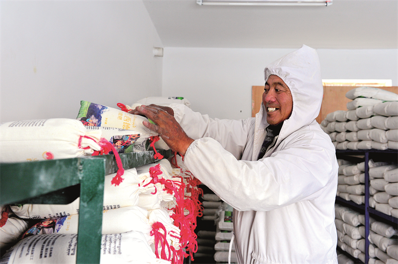 如今,在西德稞原地食品有限公司的帶動(dòng)下,久美拉姆家種的青稞根本不愁銷路。2021年,公司以每畝170斤、一斤2.5元的價(jià)格對(duì)全村青稞進(jìn)行統(tǒng)一收購,每斤收購價(jià)高于市場價(jià)0.5元。同時(shí),在村委會(huì)的統(tǒng)一安排下,久美拉姆每個(gè)月會(huì)去公司上幾天班,除了工資外,年底還能享受到公司的分紅。“公司每年輪流安排村民前來務(wù)工,累計(jì)安排村民235人次,實(shí)現(xiàn)勞務(wù)創(chuàng)收33萬元,人均增收1000元左右?!钡┰鲱D珠介紹,在公司帶動(dòng)下,普蘭全縣推廣種植白青稞3100余畝,參與群眾達(dá)200多戶,實(shí)現(xiàn)群眾增收100萬元,脫貧戶實(shí)現(xiàn)種植收入30多萬元。近年來,隨著西德稞原地食品有限公司不斷發(fā)展壯大,西德村群眾的致富途徑日益寬廣,步入了種植增收、務(wù)工增收、分紅增收等多種增收方式鋪就的康莊大道,形成了以產(chǎn)業(yè)為支撐的長效增收機(jī)制。