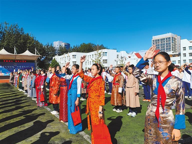 拉薩北京實驗中學(xué)舉行升國旗儀式。