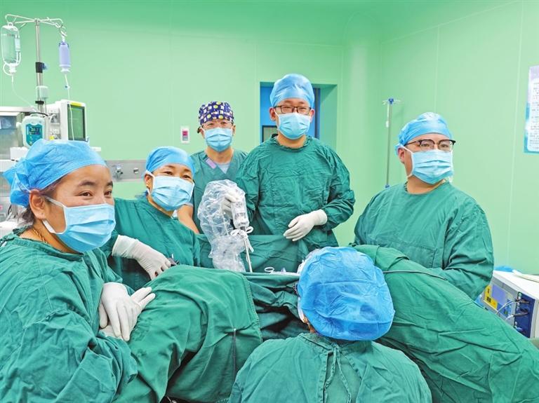 上海援藏醫(yī)療隊專家、日喀則市人民醫(yī)院婦科主任隋孟松帶領本地婦科醫(yī)生成功開展全市首例腹腔鏡下全子宮切除術(shù)。
