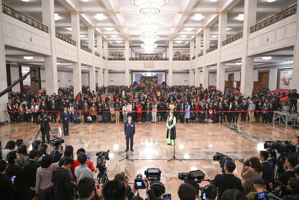 3月11日,第十四屆全國人民代表大會第三次會議第三場“代表通道”集中采訪活動在北京人民大會堂舉行。新華社記者 胥冰潔 攝