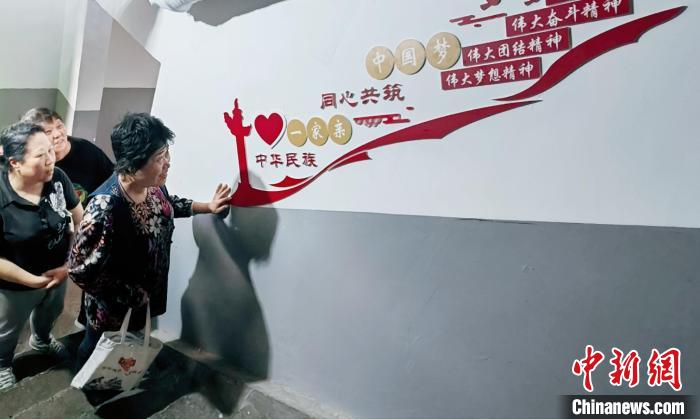 “樓里的每一處設計,都凝聚著各族居民的智慧?!睆埞葐谈锌瑥臉桥茦苏Z到過道裝飾,居民們全程參與設計,樓道里的每句標語都表達著他們心聲。