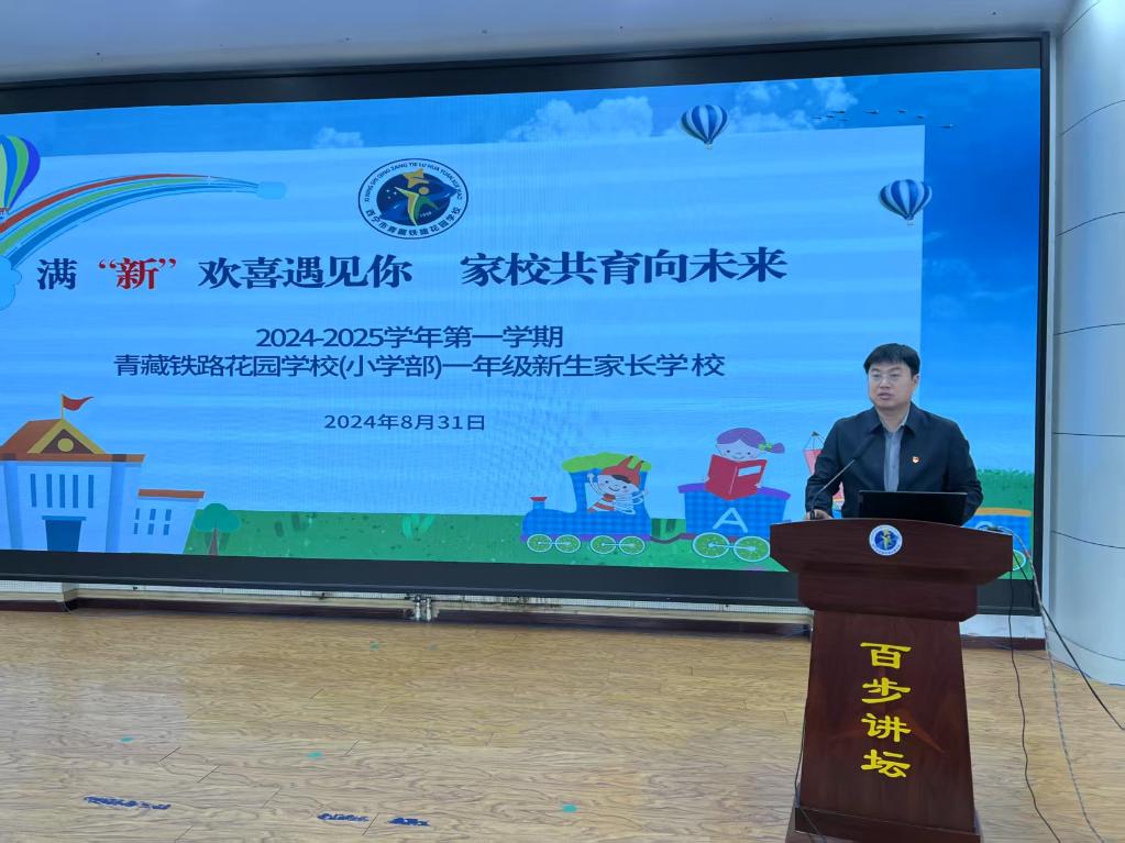江蘇援青干部、青藏鐵路花園學(xué)校副校長(zhǎng)許健在學(xué)校召開(kāi)家長(zhǎng)會(huì)。(受訪者供圖)