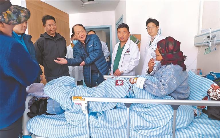 圖為南京市第一醫(yī)院關(guān)節(jié)外科專家團隊了解患者術(shù)后康復情況。格桑倫珠 攝