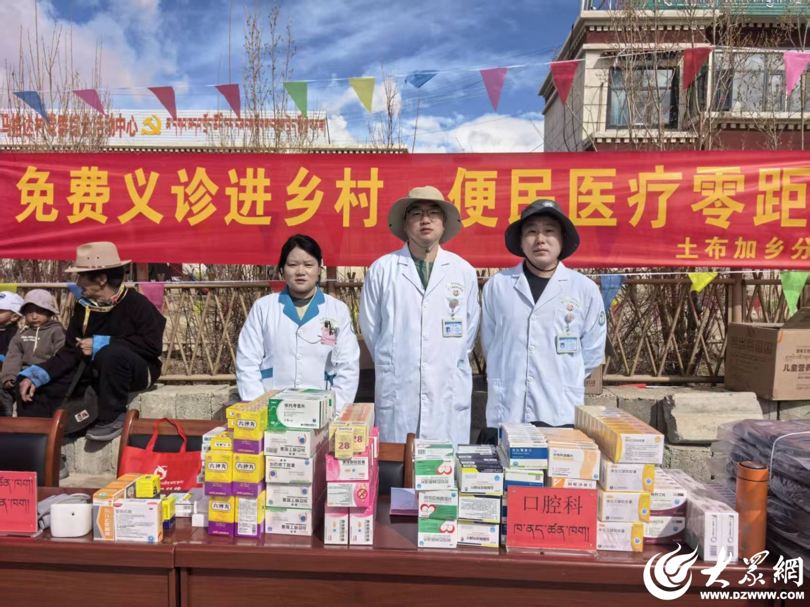 3月27日,義診現(xiàn)場突降冰雹,氣溫驟降,寒風(fēng)刺骨。面對惡劣天氣,濰坊援藏醫(yī)療隊沒有一人退縮。大家迅速用身體護(hù)住醫(yī)療設(shè)備和藥品,將行動不便的老人護(hù)送至安全區(qū)域,在風(fēng)雪中堅持完成全部診療服務(wù)。當(dāng)天累計服務(wù)群眾百余名,發(fā)放常用藥物200余盒。