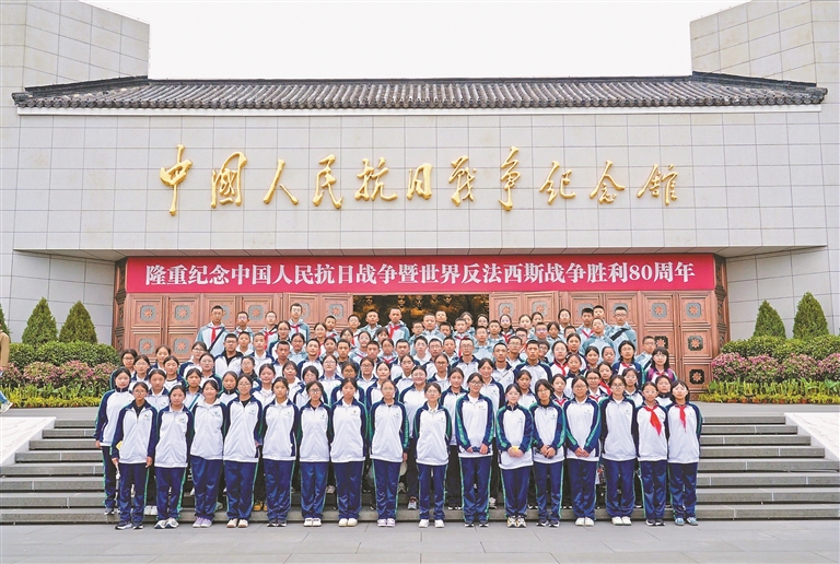 拉薩北京實驗中學研學團學生參觀中國人民抗日戰(zhàn)爭紀念館。
