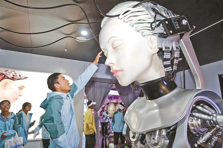 拉薩北京實驗中學研學團學生參觀藝云數(shù)字藝術(shù)中心。