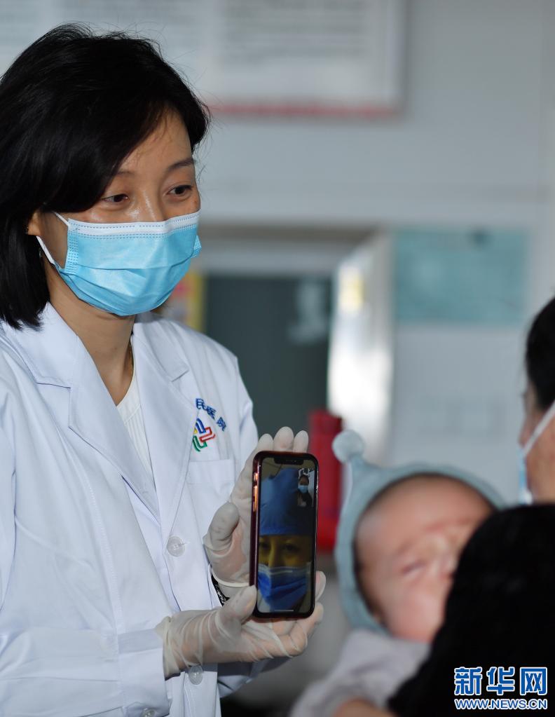 6月1日,在拉薩市人民醫(yī)院,來自北京的兒科專家(左)幫助一名家長與在北京的兒科專家視頻連線。新華社記者 覺果 攝