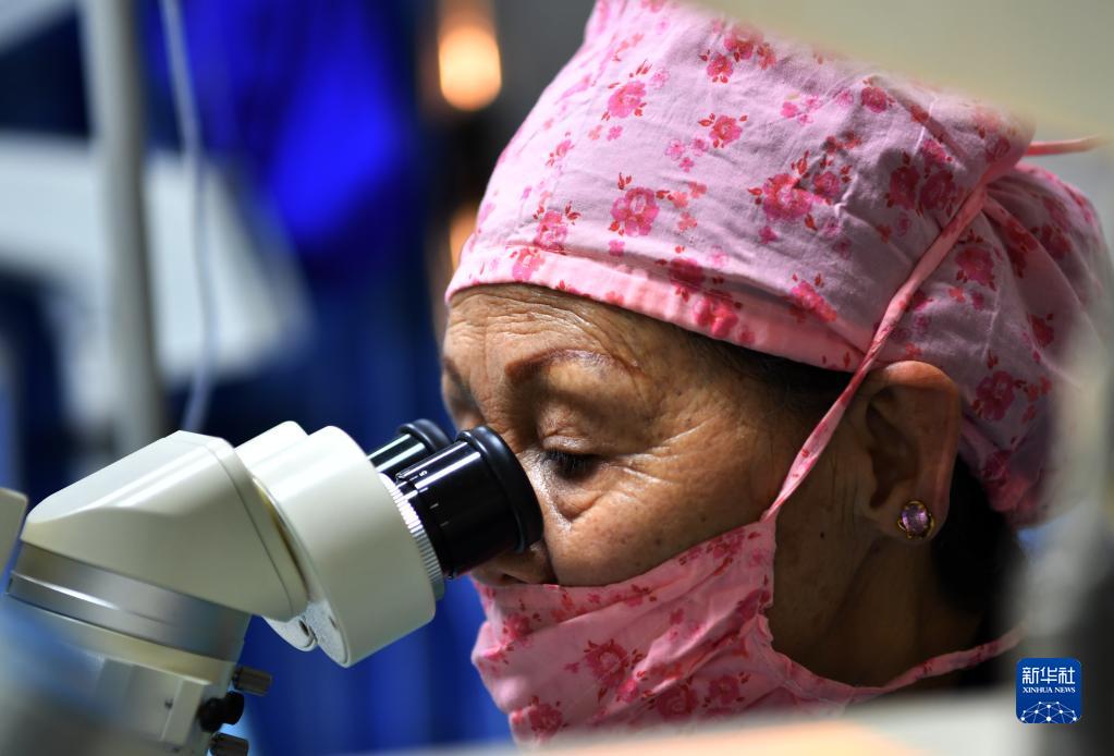 藏族眼科專家卓嘎給患者實施復明手術(3月24日攝)。新華社記者覺果 攝