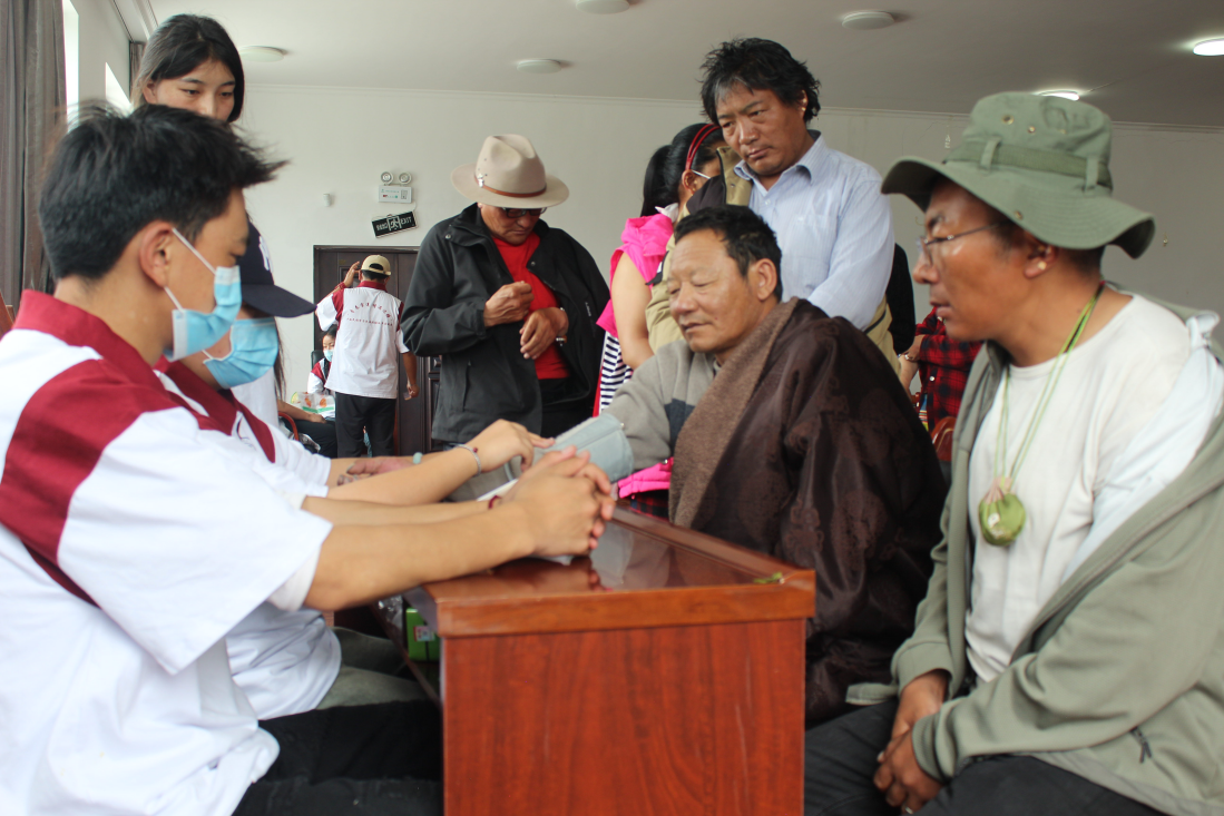 活動期間,“民族團結返鄉(xiāng)實踐團”師生先后到森布日高海拔生態(tài)搬遷安置點和那曲駐拉薩辦事處等,與西藏防治艾滋病協(xié)會工作人員共同開展“中醫(yī)藥健康進西藏 民族團結我先行”的愛心醫(yī)療志愿服務,為當?shù)乩习傩蘸屠细刹块_展針對性的中醫(yī)藥知識宣講,還為大家測血壓、血糖,共同體驗中醫(yī)藥花茶及香囊的制作過程,免費發(fā)放藥物等。