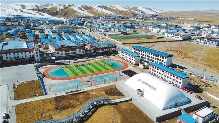 一場冬雪初晴,聶榮草原的空氣中彌漫著清新的氣息。嶄新的塑膠操場上,活躍著孩子們青春的身影。四周的教學(xué)樓、宿舍樓、多功能教室、氣膜球館等現(xiàn)代化建筑參差錯(cuò)落,儼然是這座高海拔縣城的新地標(biāo),映射著草原教育發(fā)展的鏗鏘步伐。