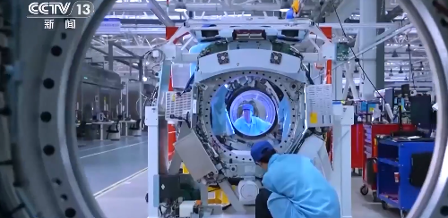 技術(shù)人員正在對(duì)航天器艙體進(jìn)行細(xì)致的調(diào)試工作 圖片來(lái)源:央視新聞