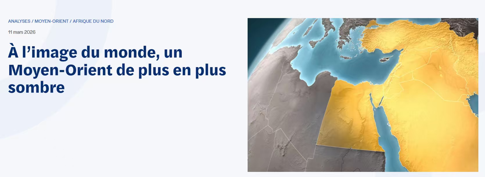 法國(guó)國(guó)際與戰(zhàn)略關(guān)系研究所(IRIS)網(wǎng)站3月11日刊登了法國(guó)地緣政治學(xué)專(zhuān)家迪迪?!け嚷。―idier Billion)撰寫(xiě)的文章,題為《正如世界局勢(shì)所示,中東局勢(shì)日益嚴(yán)峻》。文章指出,2月28日爆發(fā)的中東沖突將被載入史冊(cè),標(biāo)志著岌岌可危的國(guó)際關(guān)系規(guī)則再次被打破。