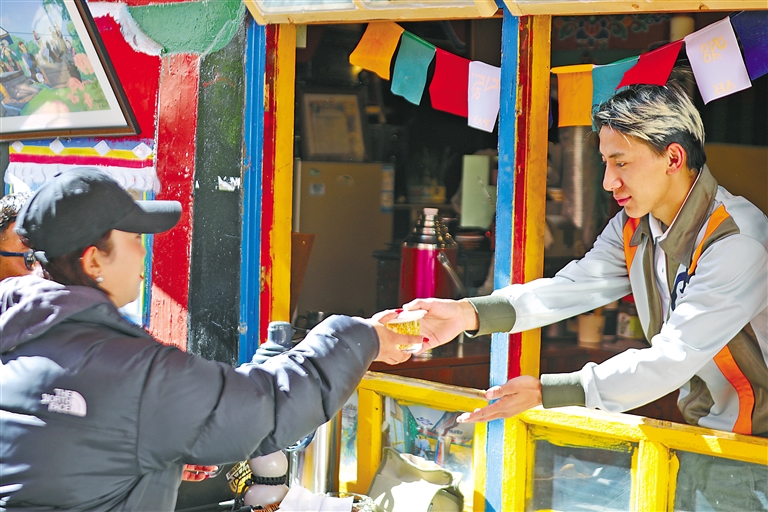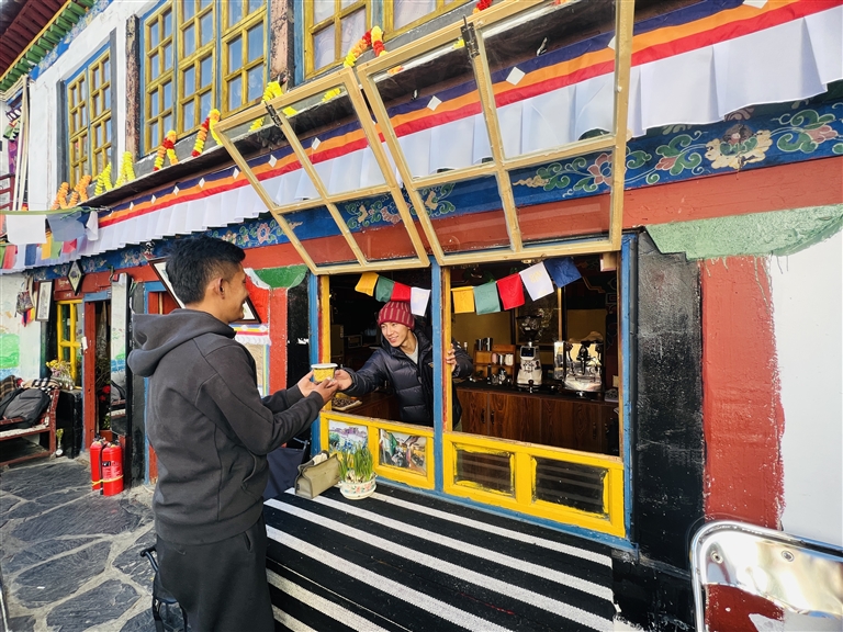 隨著對旦增特覺了解漸深,“擔(dān)當(dāng)”二字如烙印般刻在記者心間。在貢桑孜大院居民眼中,旦增特覺堪稱楷模,咖啡館的客人亦是對他贊不絕口。退休市民白珍笑容滿面地說道:“我們姐妹四個是網(wǎng)上結(jié)識這孩子的,上進又努力,瞧著他一路打拼,心里頭滿是欣慰。這不,過幾天要去外地休養(yǎng),特意先來跟他道個別,盼著他這生意越來越紅火。”