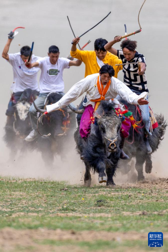 5月29日,拉薩市達(dá)孜區(qū)舉辦2025年首屆賽牦牛比賽,132頭體格健碩的牦牛在騎手駕馭下,在達(dá)孜區(qū)德慶鎮(zhèn)桑珠林村的山溝里競(jìng)速爭(zhēng)先,吸引眾多農(nóng)牧民群眾前來(lái)觀看。
