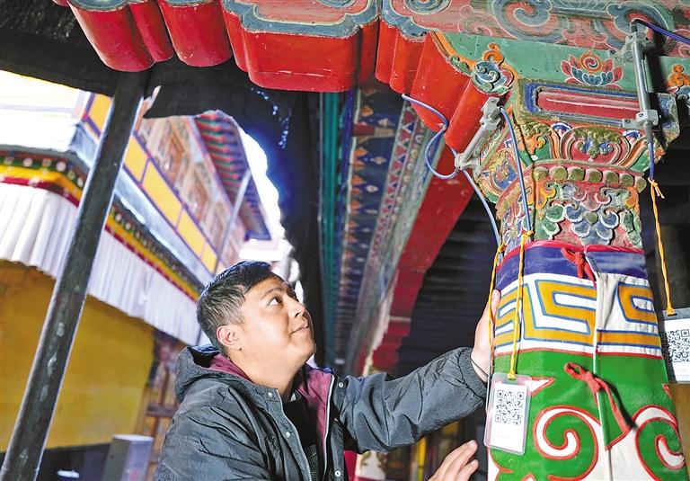 在布達拉宮監(jiān)測中心,工作人員正忙著通過數(shù)字化平臺,實時監(jiān)控布達拉宮的“一磚一瓦”。