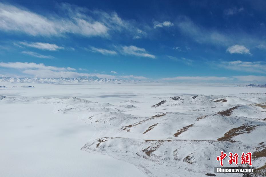 1月26日,納木錯雪景。雪后的西藏納木錯銀裝素裹,美景如畫。(無人機照片) 中新社記者 貢嘎來松 攝
