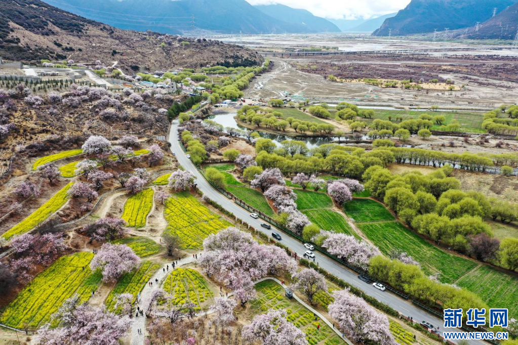 3月31日,林芝市巴宜區(qū)嘎拉村盛開的桃花(無人機(jī)圖片)。新華網(wǎng)發(fā) 李騰 攝