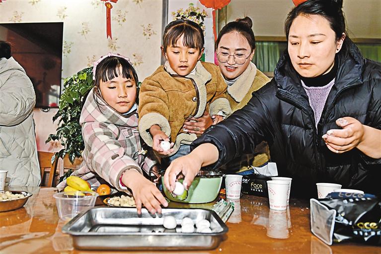 圖為拉薩市曲水縣茶巴拉鄉(xiāng)新時(shí)代文明實(shí)踐所組織開展“我們的節(jié)日”主題活動(dòng),大家一起品湯圓、制花燈、猜燈謎。記者 格桑倫珠 攝