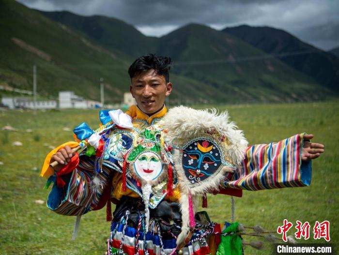 跳直孔普堆巴宣舞的28歲藏族小伙尼瑪。 劉忠俊 攝