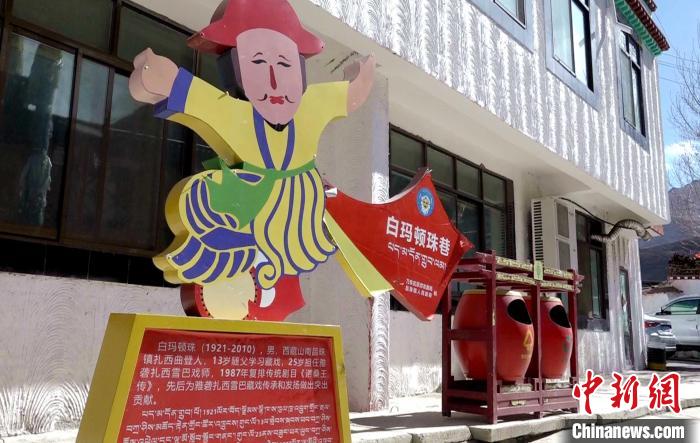 扎西曲登社區(qū)以藏戲傳承人名字命名的街巷,藏戲鼓形做成的垃圾桶,藏戲面具元素門簾、抱枕、掛件、路燈、地圖、指示牌等,無不呈現(xiàn)“藏戲第一村”濃濃的文化藝術氛圍與魅力。