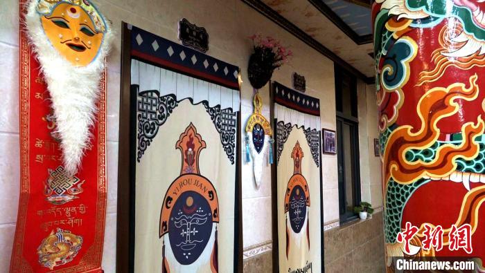 圖為充滿藏戲藝術氛圍的民宿一角。貢桑拉姆 攝