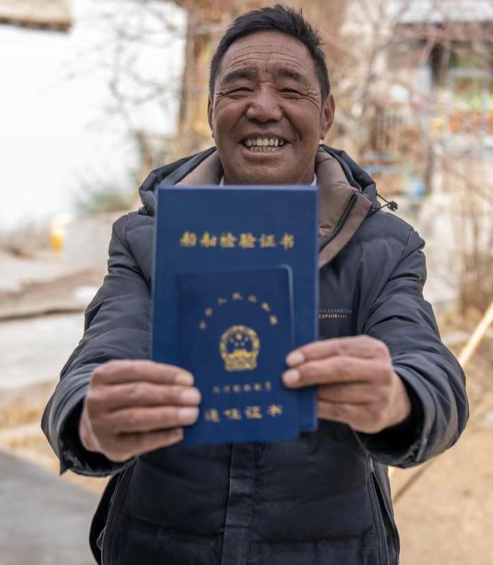索朗扎西展示自己的船舶檢驗證書(2月23日攝)。新華社記者旦增尼瑪曲珠 攝