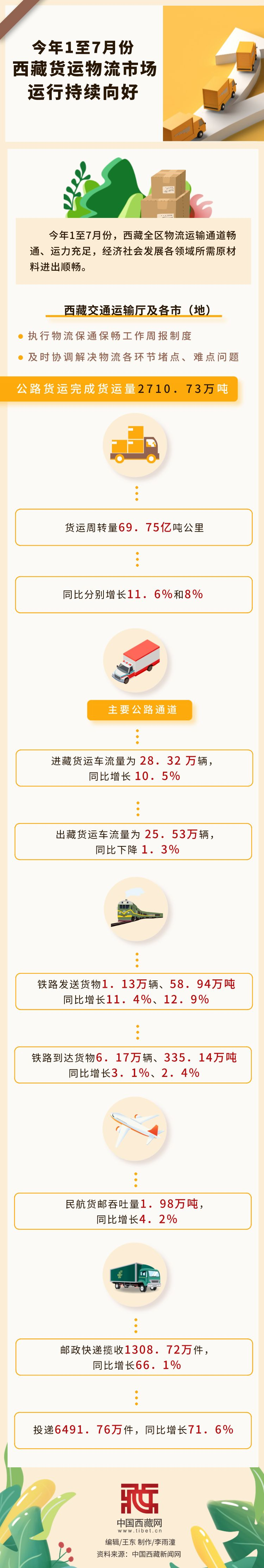 圖解|今年1至7月份 西藏貨運(yùn)物流市場(chǎng)運(yùn)行持續(xù)向好