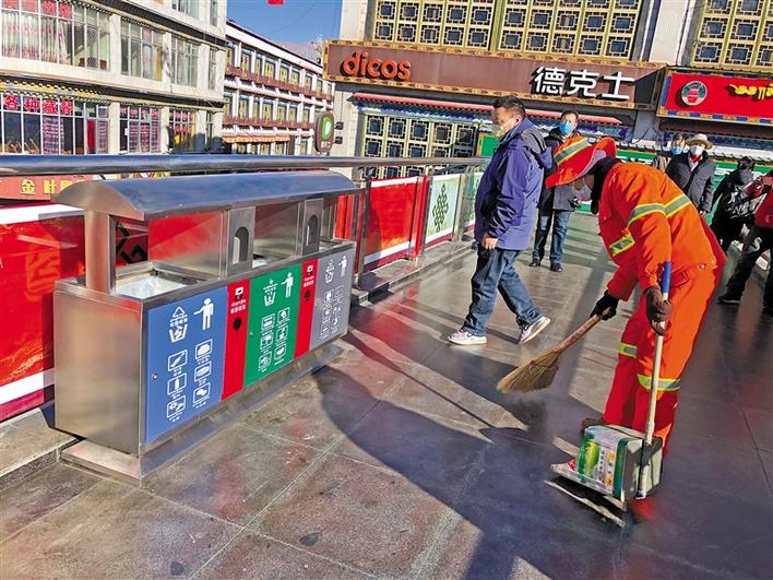 據(jù)城關(guān)區(qū)環(huán)衛(wèi)局局長(zhǎng)米瑪次仁介紹,截至2019年底,城關(guān)區(qū)環(huán)衛(wèi)局與拉薩城投潔達(dá)環(huán)衛(wèi)保潔有限公司積極與部分企事業(yè)單位、學(xué)校及社區(qū)等47個(gè)區(qū)域?qū)?,分別投放了四分類垃圾箱120套、240L垃圾桶658個(gè)、有害垃圾消納袋116個(gè)、腳踏兩分類垃圾桶321個(gè)。已建成并投入使用的積分兌換超市3家、垃圾分類投放亭4座、垃圾分類可回收物臨時(shí)存放點(diǎn)13個(gè)、有害垃圾臨時(shí)存放點(diǎn)2個(gè);采購2臺(tái)可回收物運(yùn)輸車輛、1臺(tái)有害垃圾運(yùn)輸車輛、2臺(tái)餐廚垃圾運(yùn)輸車輛和1臺(tái)大件垃圾運(yùn)輸車輛。在春節(jié)和藏歷新年期間,抽調(diào)工作人員在娘熱南路、北京東路、江蘇南路、康昂南路、林廓東路、沖賽康天橋、熱木其天橋、八廓商城天橋、阜康天橋等人流量較多的區(qū)域放置了垃圾四分類果皮箱。