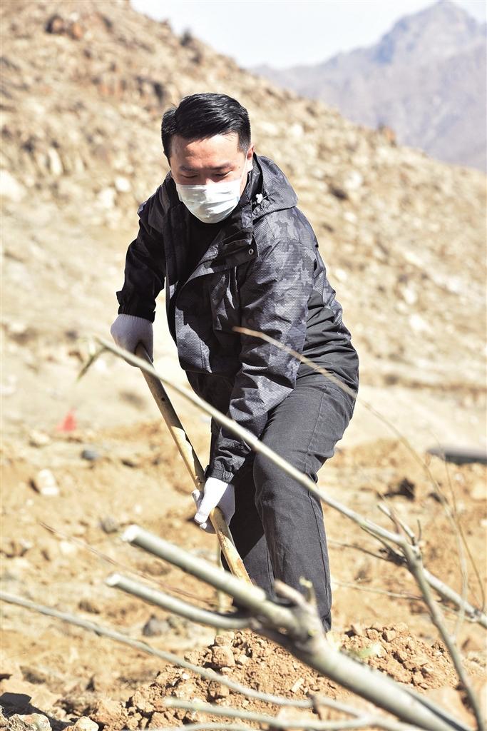 3月27日上午,在義務(wù)植樹現(xiàn)場,記者看到來自20家駐拉薩各區(qū)直、市直單位的植樹者們正忙得熱火朝天,有的提水、有的扶苗、有的埋土填坑,一派熱鬧景象。據(jù)悉,今年拉薩市將會有近兩萬人參與到義務(wù)植樹中,計劃種樹300多萬株。此次義務(wù)植樹活動以適地適樹的原則,種植河北楊、江孜沙棘等鄉(xiāng)土樹種。