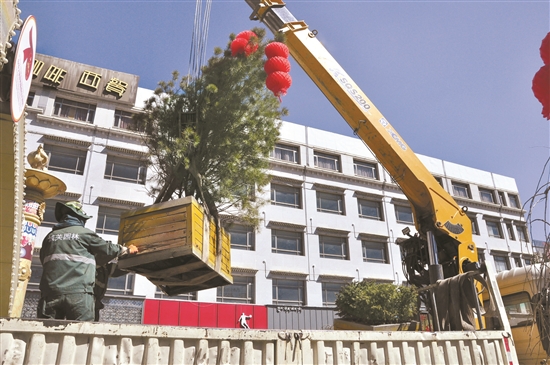 日前,西藏拉薩市城關(guān)區(qū)潔達(dá)園林公司組織工作人員對(duì)宇拓路上可移動(dòng)的景觀花箱進(jìn)行吊裝移除,為下一步更換新的綠化植物做準(zhǔn)備。