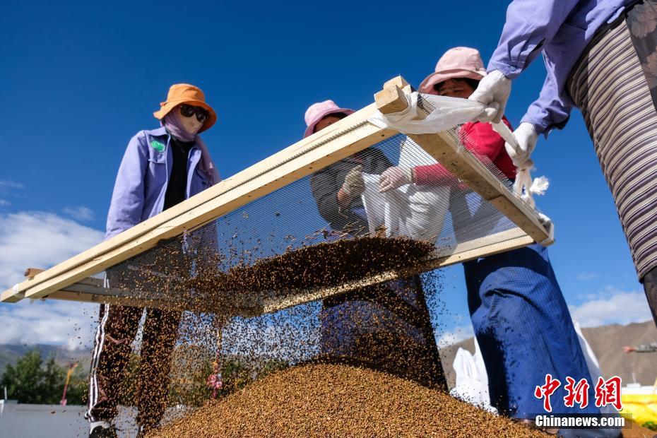 6月9日,西藏拉薩,工作人員正在篩選樹(草)種。當日,西藏自治區(qū)林業(yè)和草原局在拉薩市組織開展首次飛播造林工作,此次飛播造林共設(shè)計9個飛播作業(yè)區(qū),其中拉薩市7個,山南市2個,由拉薩雪鷹通用航空公司負責(zé)飛機播種。設(shè)計飛播造林面積21.8萬畝,設(shè)計飛機播種沙棘、砂生槐等樹(草)種約119.3噸。中新社記者 何蓬磊 攝