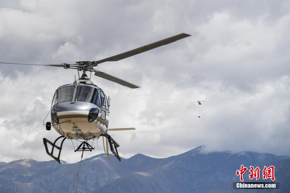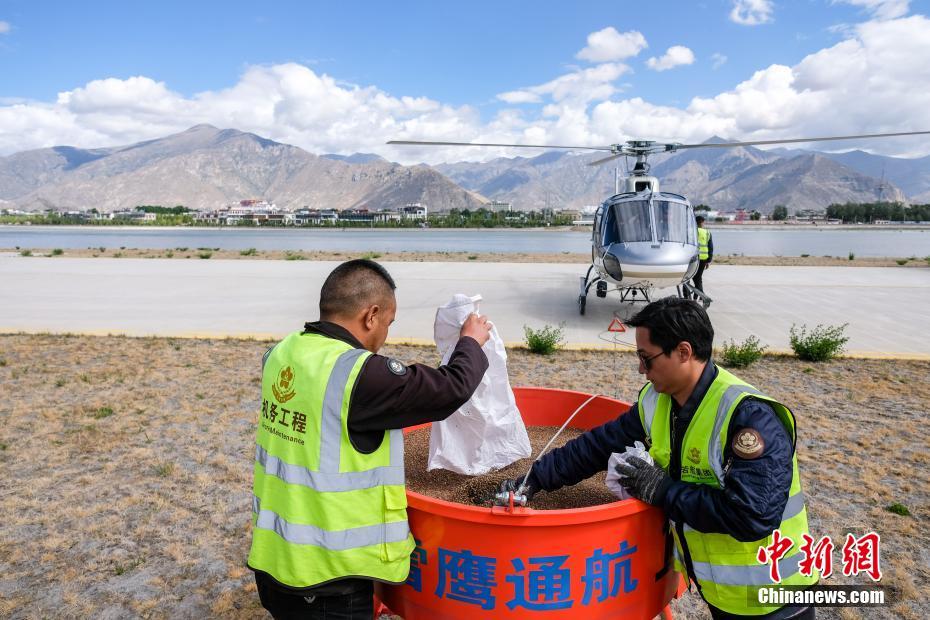 6月9日,西藏拉薩,拉薩雪鷹通航直升機正在開展飛播造林作業(yè)。當日,西藏自治區(qū)林業(yè)和草原局在拉薩市組織開展首次飛播造林工作,此次飛播造林共設(shè)計9個飛播作業(yè)區(qū),其中拉薩市7個,山南市2個,由拉薩雪鷹通用航空公司負責(zé)飛機播種。設(shè)計飛播造林面積21.8萬畝,設(shè)計飛機播種沙棘、砂生槐等樹(草)種約119.3噸。中新社記者 何蓬磊 攝
