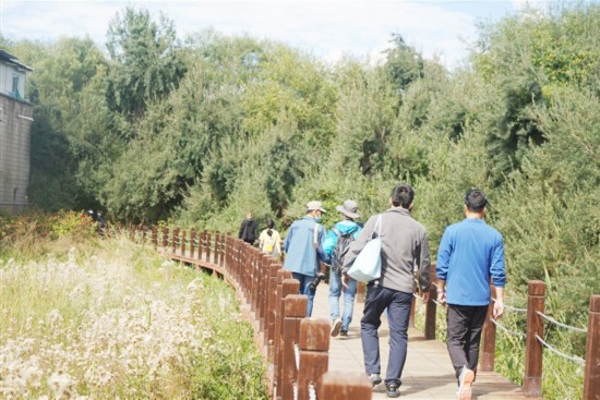 9月初,濕地里的花草樹木從夏天的翠綠到初秋的泛黃,成為了拉魯濕地另一番美景?!∪藗冊诓叫衅溟g,呼吸著充足的氧氣,情緒高漲,邁開輕快而有力的步伐,沿著拉魯濕地步道健步前行,時而駐足觀望沿途美景,時而聚集一方合影留念,不僅鍛煉了身體,又領略了自然風光,也陶冶了情操。