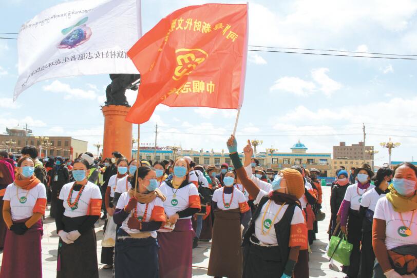 河南縣巾幗志愿服務(wù)隊(duì)開展環(huán)境整治現(xiàn)場。 攝影:公保安加
