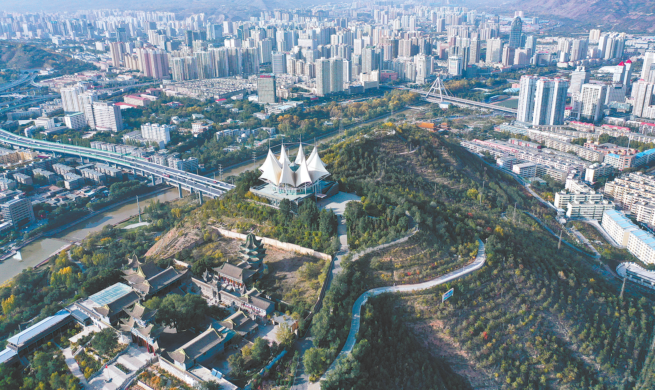 10月12日拍攝的西寧市南山公園(無人機照片)。
