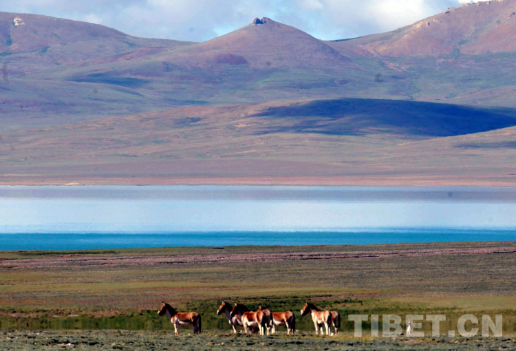 這是在藏北無人區(qū)一湖泊前悠閑生活的國家一級保護動物藏野驢(唐召明2009年攝)